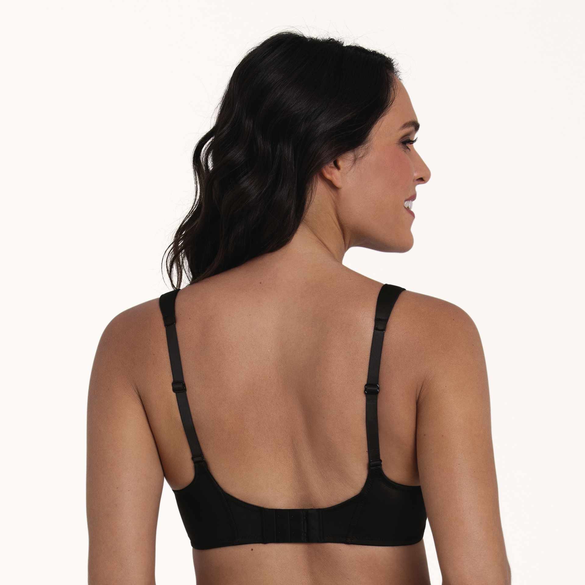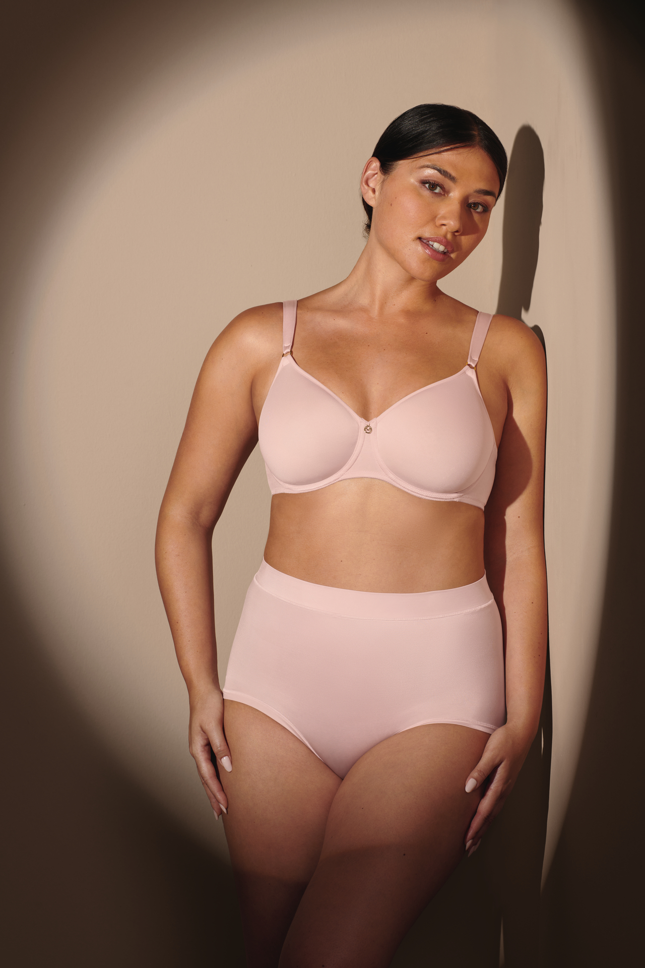 Le coppe Spacer traspiranti donano una sensazione di freschezza, mentre il ferretto e il dorso rinforzato offrono un sostegno impeccabile anche nelle taglie più generose. Le spalline morbide e il raffinato dettaglio centrale completano un look elegante e irresistibilmente confortevole.