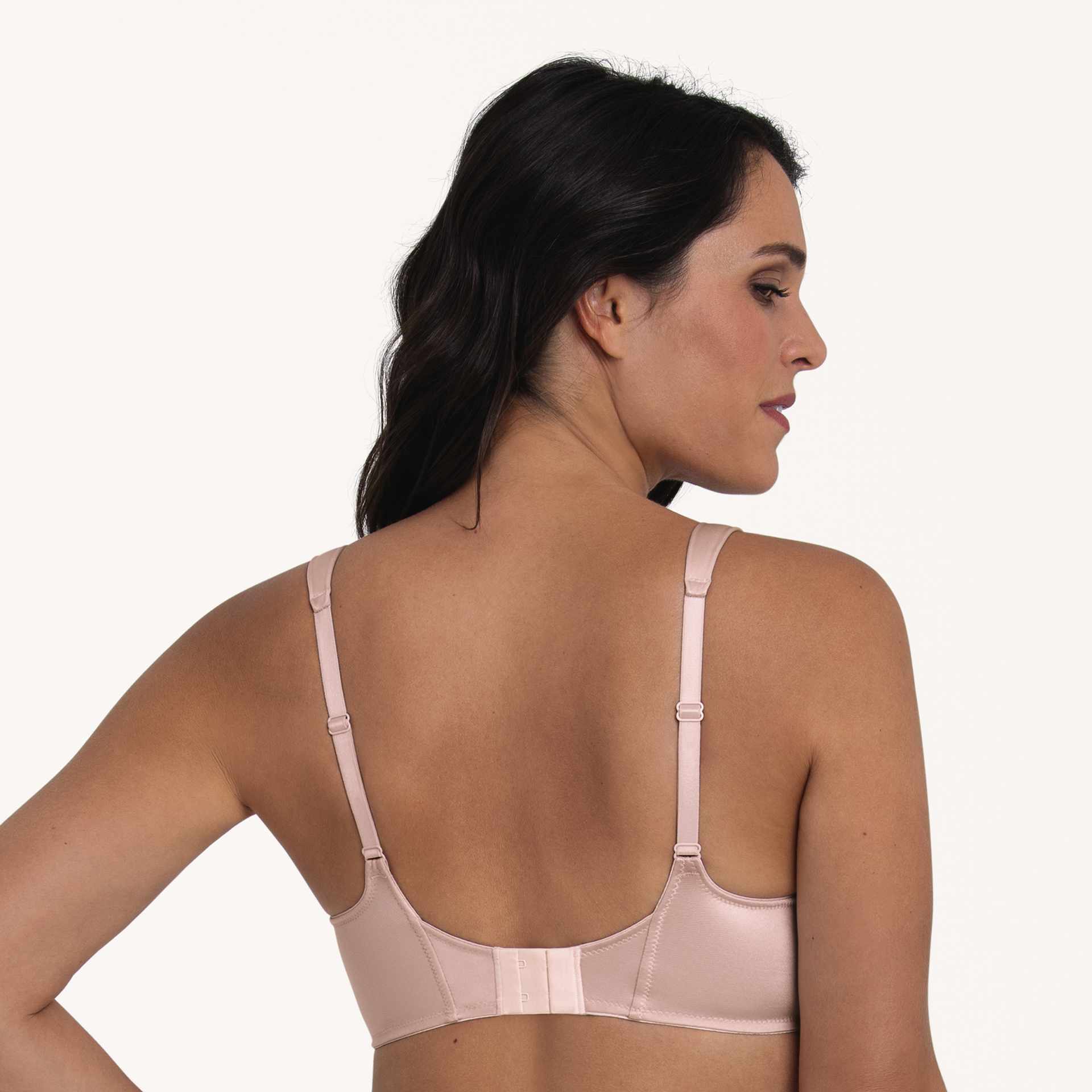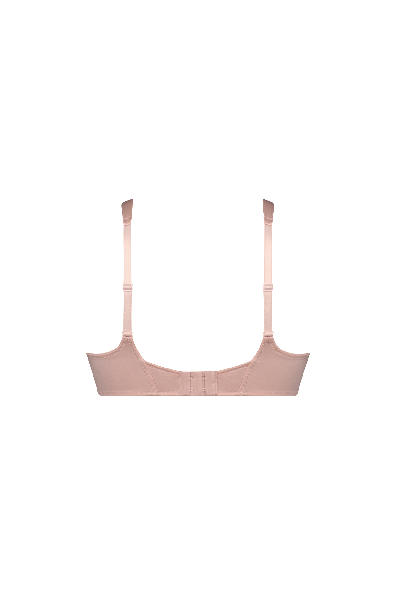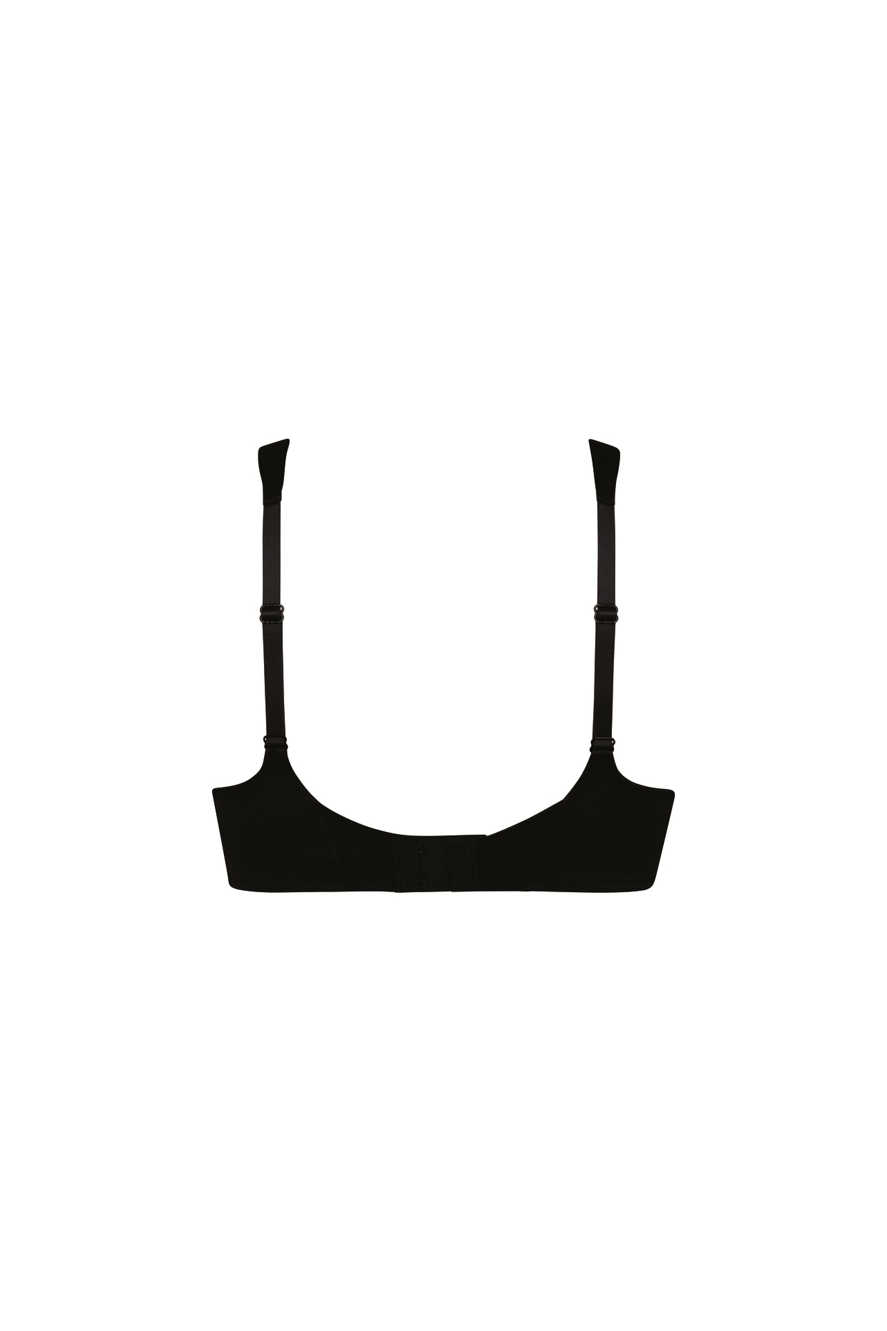 Le coppe Spacer traspiranti donano una sensazione di freschezza, mentre il ferretto e il dorso rinforzato offrono un sostegno impeccabile anche nelle taglie più generose. Le spalline morbide e il raffinato dettaglio centrale completano un look elegante e irresistibilmente confortevole.